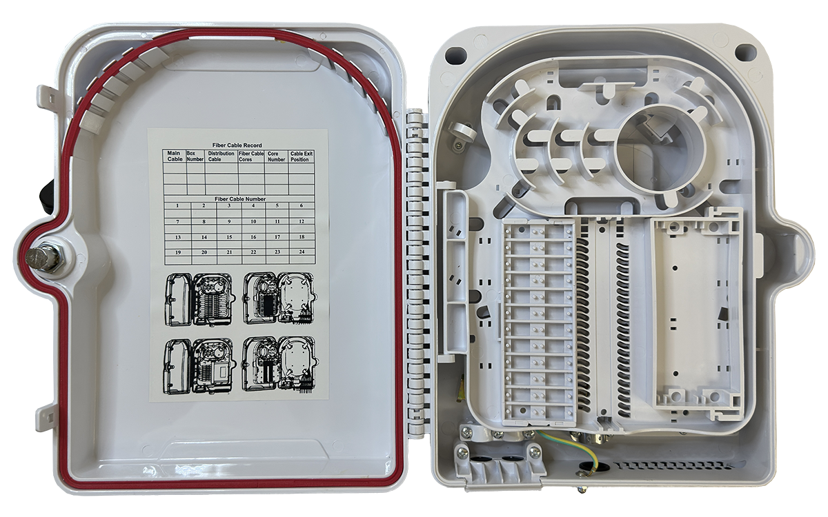 X-line FTTH-FDB-24 — оптические распределительные коробки, используются в системах передачи данных для соединения и коммутации магистральных и абонентских оптических кабелей, а также механической защиты сварных соединений оптических волокон.